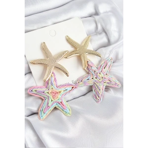 Pirinç Sallantılı Rainbow Deniz Yıldızı Model Gold Renk Hasır Küpe