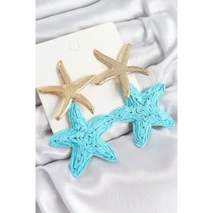 Pirinç Sallantılı Turkuaz Deniz Yıldızı Model Gold Renk Hasır Küpe