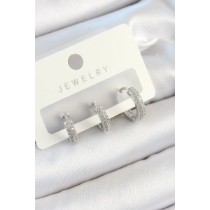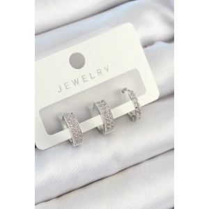 Pirinç Zirkon Taşlı Halka Model Gümüş Renk 3'lü Çift Kadın Küpe Set