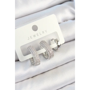 Pirinç Zirkon Taşlı Halka Model Gümüş Renk 3'lü Çift Kadın Küpe Set