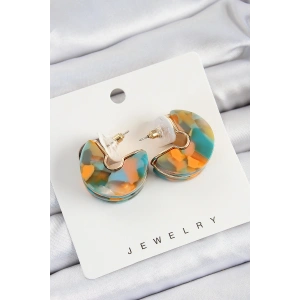 Pirinç Mermer Desenlli Mavi Sedef Oval Vintage Model Gold Renk Kadın Küpe