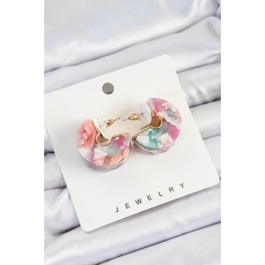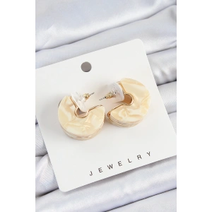 Pirinç Mermer Desenlli Bej Sedef Oval Vintage Model Gold Renk Kadın Küpe