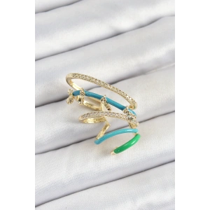 Pirinç Zirkon Taşlı Mavi Yeşil Sıkıştırma Sağ Kıkırdak Gold Renk Kadın Küpe
