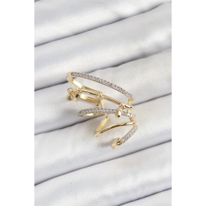 Pirinç Zirkon Taşlı Sıkıştırma Sağ Kıkırdak Gold Renk Kadın Küpe