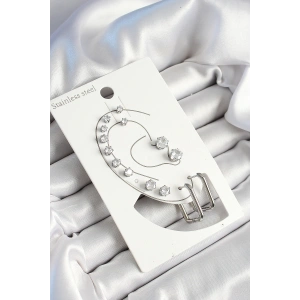 316L Çelik Halka Figürlü Ve Zirkon Taşlı Gümüş Renk 7'li Çift Kadın Küpe Set