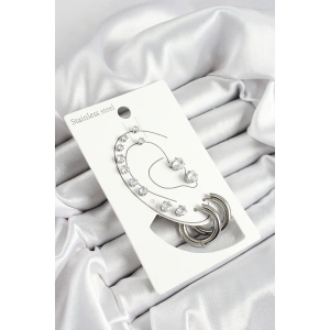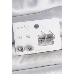 Pirinç Gümüş Renk Zirkon Taş Detay Halka Model 3 Çift Kadın Küpe Seti
