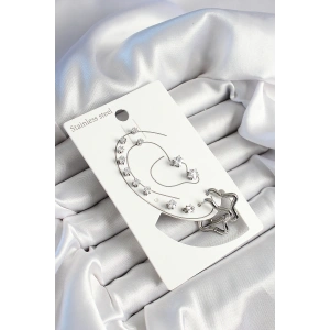 316L Çelik Yıldız Figürlü Ve Zirkon Taşlı Gümüş Renk 7'li Çift Kadın Küpe Set