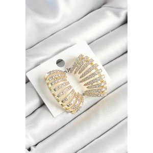 Pirinç Zirkon Taşlı Çoklu Görünümlü Model Gold Renk Kadın Küpe