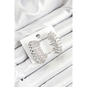 Pirinç Gümüş Renk Zirkon Taş Detaylı Sallantı Model 2 Çift Kadın Küpe Seti