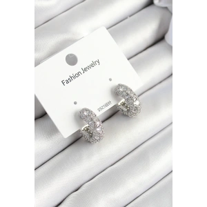 Pirinç Zirkon Taşlı Halka Model Gümüş Renk Kadın Küpe