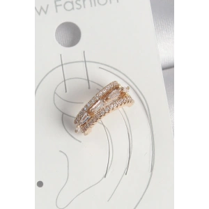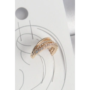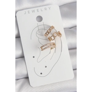 Pirinç Gold Renk Zirkon Taşlı 3'Lü Sıralı Model Kadın Kıkırdak Küpe