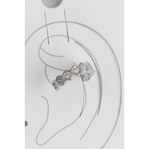 Pirinç Gümüş Renk Bal Peteği Model Zirkon Taşlı Kadın Kıkırdak Küpe