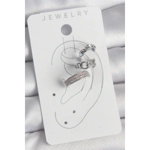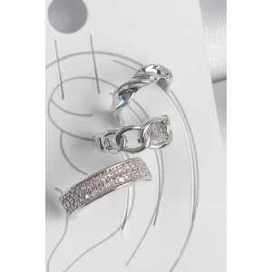 Pirinç Gümüş Renk Zirkon Taşlı 3'Lü Zincir Sarmal Model Kadın Kıkırdak Küpe