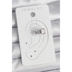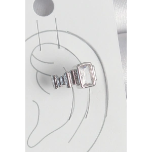 Pirinç Gümüş Renk Kare Zirkon Taşlı Kadın Kıkırdak Model Küpe