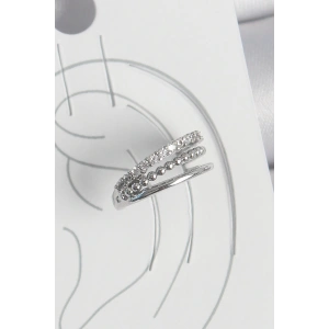 Pirinç Gümüş Renk Zirkon Taşlı 3'Lü Sıralı Kadın Kıkırdak Küpe