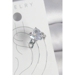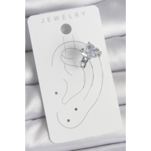 Pirinç Gümüş Renk Zirkon Taşlı Kalp Model Kadın Kıkırdak Küpe