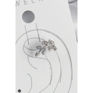 Pirinç Gümüş Renk Zirkon Taşlı Yaprak Model Kıkırdak Kadın Küpe
