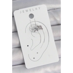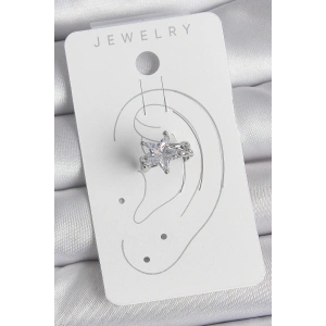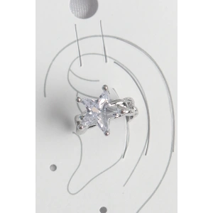 Pirinç Gümüş Renk Zirkon Taşlı Yıldız Model Kadın Kıkırdak Küpe