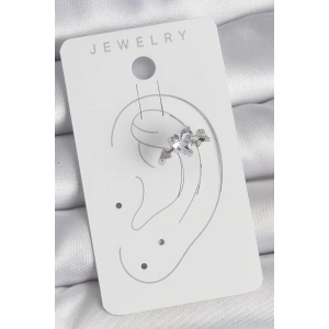 Pirinç Gümüş Renk Zirkon Taşlı Kadın Kıkırdak Model Küpe