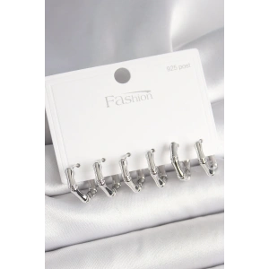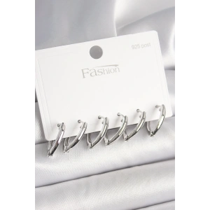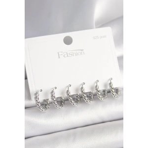 925 Ayar Gümüş Çivi Pirinç Gümüş Renk Sarmal Halka Model Kadın Küpe Seti