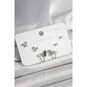 925 Ayar Gümüş Çivi Pirinç Gümüş Renk Zirkon Taşlı Kelebek Model Kadın Küpe Seti