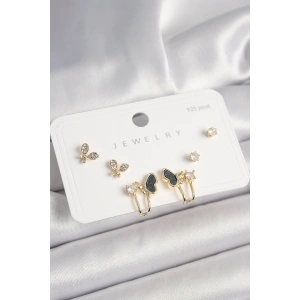 925 Ayar Gümüş Çivi Pirinç Zirkon Taşlı Kelebek Model Kadın Küpe Seti
