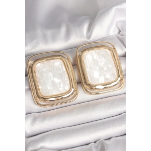 Pirinç Gold Renk Beyaz Mineli Kare Model Kadın Küpe