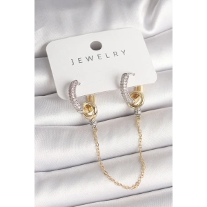 Pirinç Mix Renk Zirkon Taşlı Sallantı Zincir Model Kadın Küpe