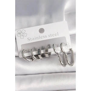 316L Çelik Gümüş Renk Kalp Halka Model Kadın Küpe Seti