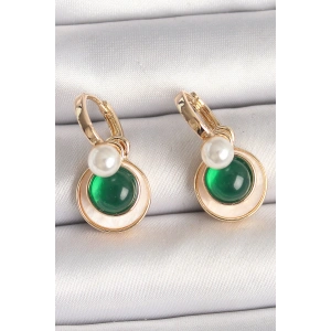 Pirinç Gold Renk Beyaz Yeşil Sallantı Mineli Kadın Küpe