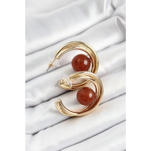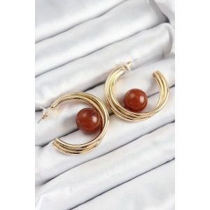 Pirinç Gold Renk Halka Model Kahverengi Boncuk Detay Kadın Küpe