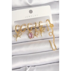 Pirinç Gold Renk Sallantı Yılan Model Zirkon Taşlı Halka Kilit Kalp Detay Kadın Küpe Seti