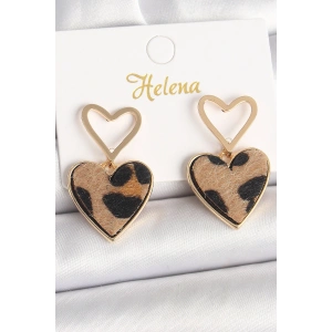 Pirinç Gold Renk Sallantı Leopar Kalp Model Kadın Küpe
