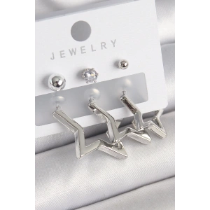 316L Çelik Gümüş Renk Yıldız Model Kadın Küpe Seti