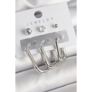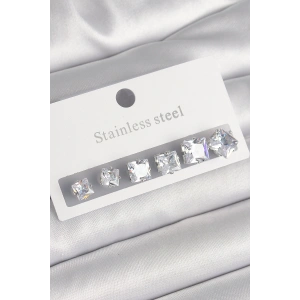316L Çelik Gümüş Renk Kare Zirkon Taşlı Kadın Küpe Seti