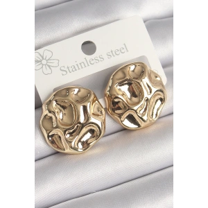 Pirinç Gold Renk İşlemeli Daire Plaka Model Kadın Küpe