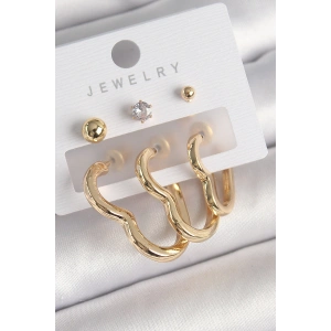 Pirinç Gold Renk 3 Sıralı Dalgalı Model Kadın Küpe