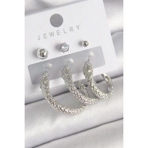 Pirinç Gümüş Renk Halka Model Zirkon Taşlı Topçuk Detay Kadın Küpe Seti