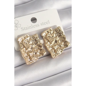 Pirinç Gold Renk İşleme Detaylı Katlanmış Kare Plaka Model Kadın Küpe