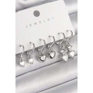 Pirinç Gümüş Renk Kalp Model Zirkon Taş Topçuk Detay Kadın Küpe Seti