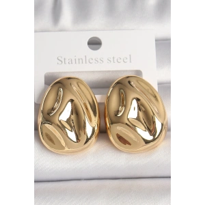 Pirinç Gold Renk İşlemeli Oval Model Kadın Küpe