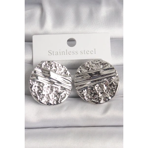 Pirinç Gümüş Renk İşlemeli Daire Plaka Model Kadın Küpe