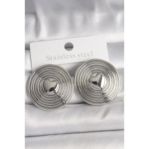 Pirinç Gümüş Renk Kalp İşlemeli Daire Plaka Model Kadın Küpe