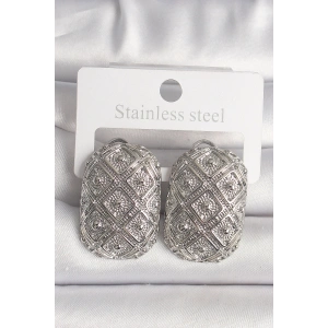 Pirinç Gümüş Renk İşlemeli Oval Model Kadın Küpe
