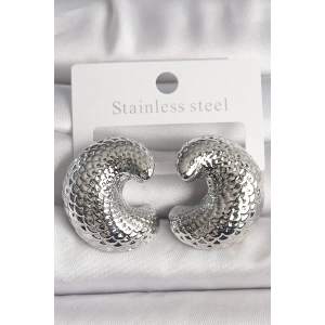 Pirinç Gümüş Renk Yılan Sırtı İşlemeli Yarım Halka Model Kadın Küpe