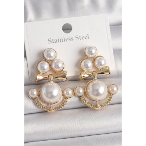 Pirinç Gold Renk İncili Çapa Model Kadın Küpe
