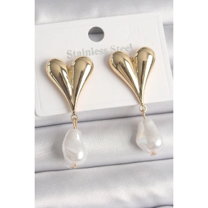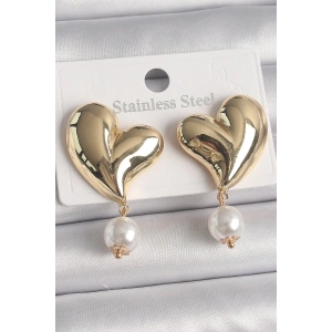 Pirinç Gold Renk Kalp Model Sallantı İnci Detay Kadın Küpe