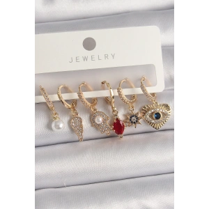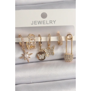 Pirinç Gold Renk Zirkon Taşlı Çoklu Figür Kadın Küpe Seti