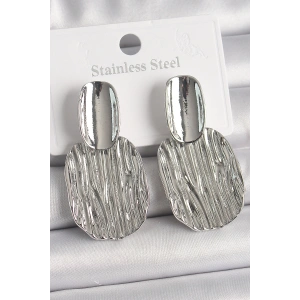 Pirinç Gümüş Renk İşlemeli Kare Plaka Model Kadın Küpe