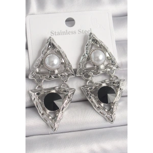 Pirinç Gümüş Renk Sallantı Üçgen Model İnci Detay Kadın Küpe